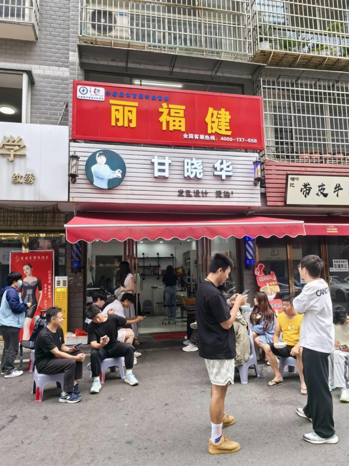 10月4日是今年国庆中秋长假的第四天。当时上午9时许,极目新闻记者来到湖南怀化长泥坡新村的“网红打卡地”晓华理发店,这里有30多位顾客已经拿号在排队等候。